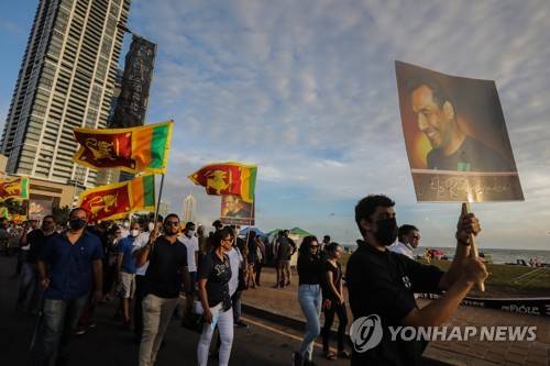 epa09952900 Protesters shout slogans and wave Sri Lankan flags during a protest in front of the Presidential Secretariat in Colombo, Sri Lanka, 17 May 2022. Thousands of protesters stage the Occupy Galle Face protest since over a month in front of the Presidential Secretariat calling for the resignation of the president over the alleged failure to address the economic crisis. Sri Lanka faces its worst economic crisis in decades due to the lack of foreign exchange, resulting in severe shortages in food, fuel, medicine, and imported goods. EPA/CHAMILA KARUNARATHNE