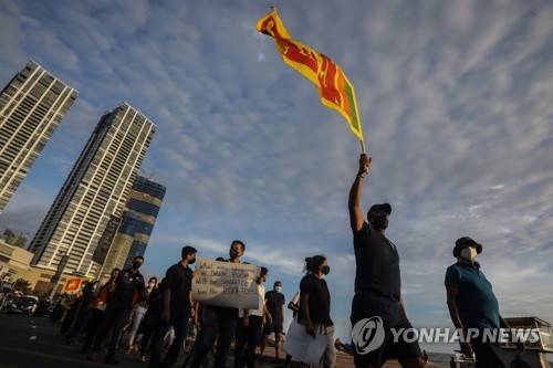 epa09952902 Protesters shout slogans and wave Sri Lankan flags during a protest in front of the Presidential Secretariat in Colombo, Sri Lanka, 17 May 2022. Thousands of protesters stage the Occupy Galle Face protest since over a month in front of the Presidential Secretariat calling for the resignation of the president over the alleged failure to address the economic crisis. Sri Lanka faces its worst economic crisis in decades due to the lack of foreign exchange, resulting in severe shortages in food, fuel, medicine, and imported goods. EPA/CHAMILA KARUNARATHNE