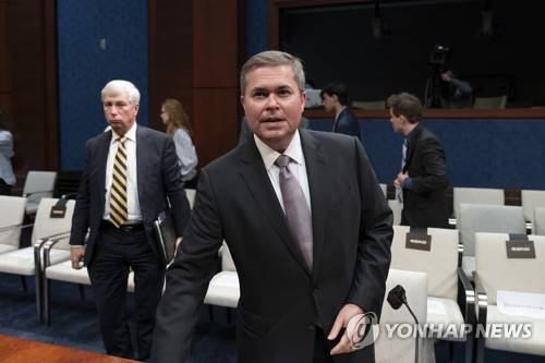 Deputy Director of Naval Intelligence Scott Bray departs after a hearing of the House Intelligence, Counterterrorism, Counterintelligence, and Counterproliferation Subcommittee hearing on "Unidentified Aerial Phenomena," on Capitol Hill, Tuesday, May 17, 2022, in Washington. (AP Photo/Alex Brandon)