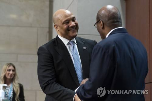 Chairman Rep. Andre Carson, D-Ind., left, and Under Secretary of Defense for Intelligence and Security Ronald Moultrie speak after a hearing of the House Intelligence, Counterterrorism, Counterintelligence, and Counterproliferation Subcommittee hearing on "Unidentified Aerial Phenomena," on Capitol Hill, Tuesday, May 17, 2022, in Washington. (AP Photo/Alex Brandon)