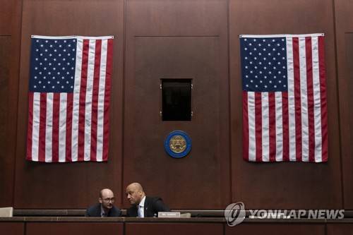 Chairman Rep. Andre Carson, D-Ind., right, speaks with an aide before a hearing of the House Intelligence, Counterterrorism, Counterintelligence, and Counterproliferation Subcommittee hearing on "Unidentified Aerial Phenomena," on Capitol Hill, Tuesday, May 17, 2022, in Washington. (AP Photo/Alex Brandon)