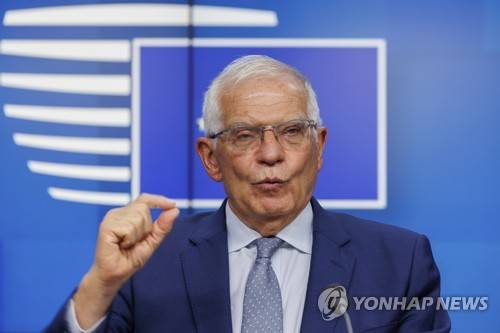 EU Foreign Policy Chief Josep Borrell speaks to the press after a meeting of EU defence ministers at the European Council building in Brussels in Brussels, Tuesday, May 17, 2022. European Union defence ministers on Tuesday have discussed current affairs and have an exchange of views on the Russian aggression against Ukraine and the Global Gateway. (AP Photo/Olivier Matthys)