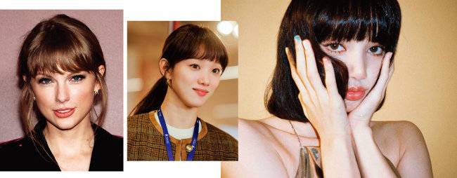 스타일에 따라 수시로 앞머리를 올렸다 내렸다 하고 싶다면 시스루뱅을 추천한다. 이마가 보일 듯 말 듯한 스타일로 앞머리 숱이 적기 때문에 언제든지 앞머리를 없앨 수 있는 게 특징. 좋은 예가 배우 신민아다. 오랫동안 뱅 스타일을 유지해온 신민아는 지난해 tvN 드라마 '갯마을 차차차’에서 앞머리를 넘긴 깔끔한 모습을, 4월 방영을 시작한 '우리들의 블루스’에서는 가벼운 시스루뱅을 선보였다. 배우 임수정의 헤어스타일은 많은 여자들의 로망. 긴 생머리에 앞머리가 눈썹까지 오는 뱅 스타일인데, 앞머리를 일자로 자르지 않고 이마 양 끝에서 살짝 길게 내려 얼굴이 갸름해 보이도록 했다. 앞머리 양 끝을 깔끔하게 잘라낸 일자 시스루뱅으로 단아한 매력을 선보인 배우 김민하의 스타일도 참고할 만하다. 성숙한 분위기를 원한다면 가수 겸 모델 두아 리파의 세미 시스루뱅을 추천한다. 풀뱅과 시스루뱅의 중간 정도 숱으로 눈을 살짝 가리면 한층 관능적인 분위기를 연출할 수 있다.
