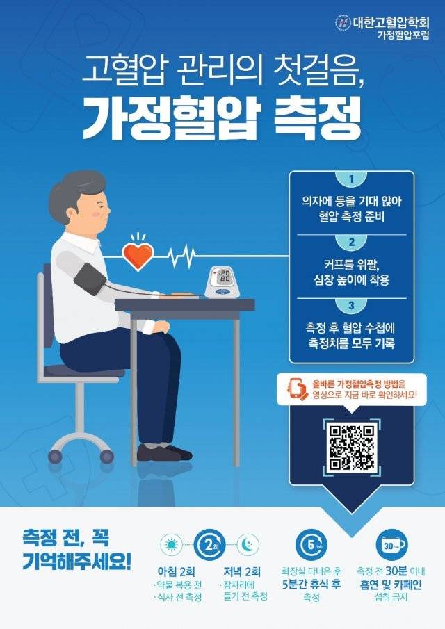 혈압은 여러 요인에 따라서 수치가 달라질 수 있다. 이 때문에 평소에 혈압을 자주 재보는 것이 중요하다. 특히 고혈압 환자는 일 년에 몇 차례 병원 진료실을 찾는 것만으로는 자신의 혈압 상태를 정확히 알기 어렵다. 최근에는 정확성이 검증된 가정혈압계가 많이 보급된 만큼 이를 이용해 혈압을 자주 재면 자신의 상태를 더 잘 알 수 있다.
