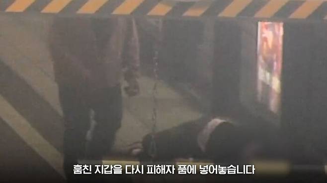 이름 모를 취객에게 선의를 베푸는 것 같았던 A 씨는 이후 수상하게 움직이기 시작했습니다. 그가 취객의 기색을 살피더니 주변을 두리번거리며 취객의 주머니에서 지갑을 꺼낸 것입니다.