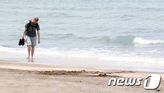(제주=뉴스1) 오현지 기자 = 낮 최고기온이 26도에 육박한 18일 오후 제주시 삼양동 검은모래해변에서 관광객과 도민들이 더위를 식히고 있다. 2022.5.18/뉴스1