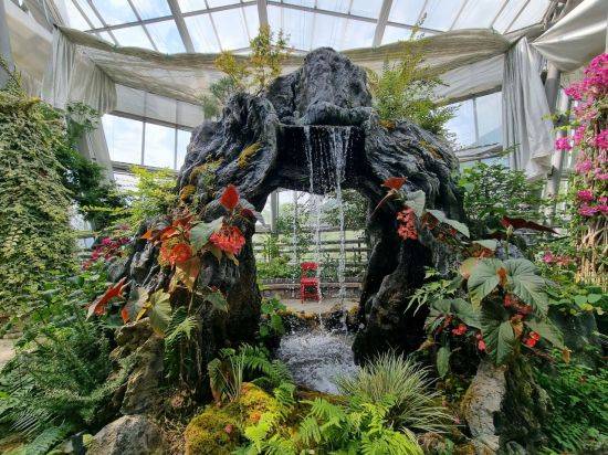 홍가시나무와 장미터널을 지나 온실로 들어가면 폭포수 사이로 베고니아가 관람객들을 맞이한다.