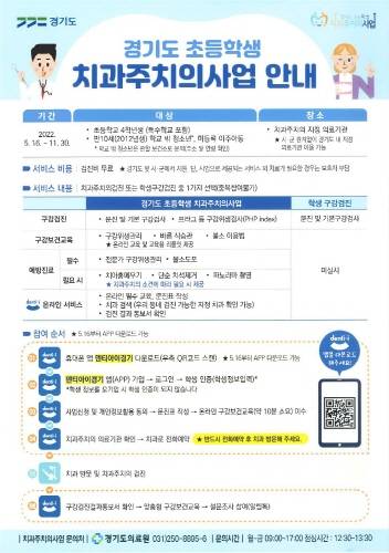 '경기도 초등학생 치과주치의 사업'은 아동의 평생 구강 건강 실현의 기반을 마련하기 위해 예방 중심의 포괄적인 구강 보건 서비스를 제공하는 사업이다.