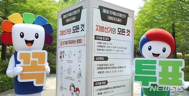 [전주=뉴시스] 김얼 기자 = 전라북도선거관리위원회 관계자들이 18일 전북 전주시 전주동물원을 방문해 제8회 전국동시지방선거 공식 선거운동을 하루 앞두고 투표 독려 홍보 캠페인을 하고 있다. 2022.05.18. pmkeul@newsis.com