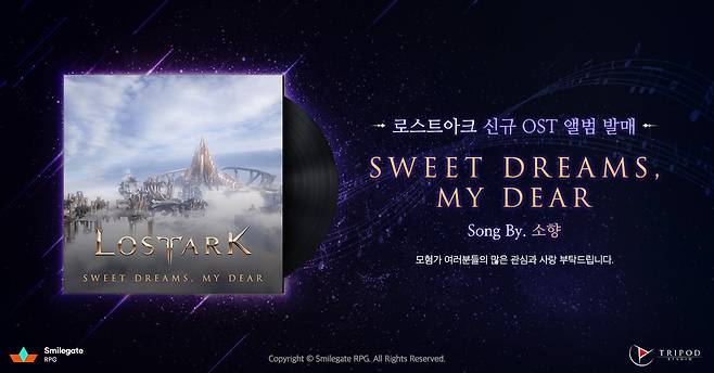 스마일게이트RPG는 온라인 MMORPG '로스트아크'의 OST 중 가수 소향이 부른 OST 앨범 '스윗 드림즈, 마이 디어(Sweet Dreams, My Dear)'를 국내 주요 음원 사이트에 발매했다.