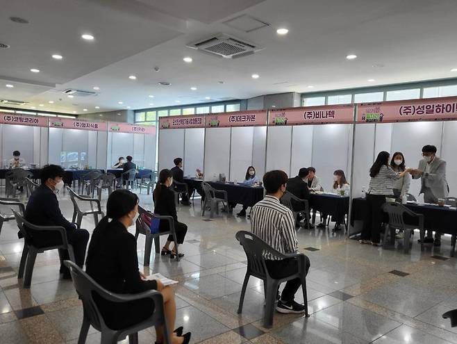 [군산=뉴시스]고석중 기자 = 전북 군산대학교 캠퍼스에서 18일 개최된 일자리 매칭데이 '취업해 봄'이 성황리에 진행됐다.