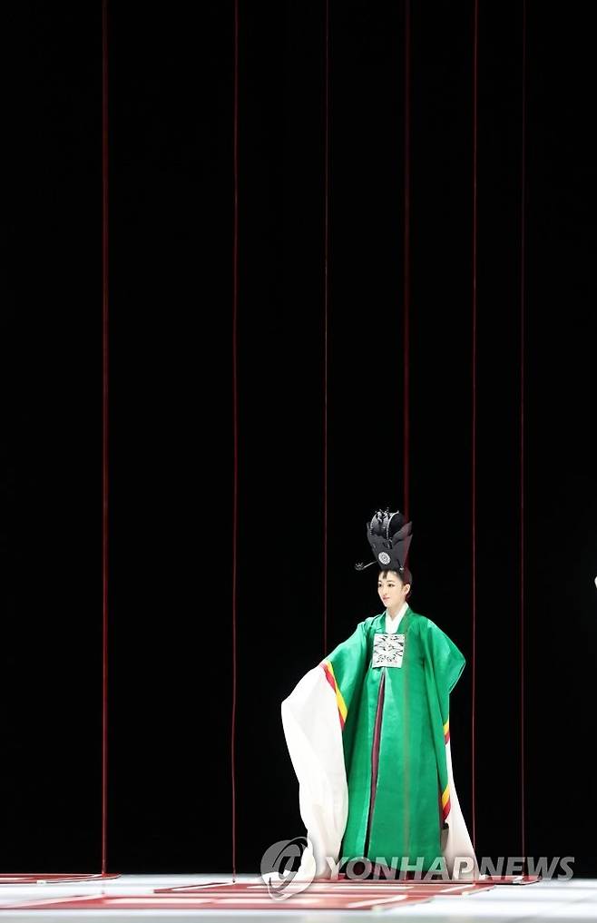 (서울=연합뉴스) 김인철 기자 = 18일 오후 서울 종로구 세종문화회관에서 열린 '일무' 프레스콜에서 서울시무용단이 공연을 하고 있다.