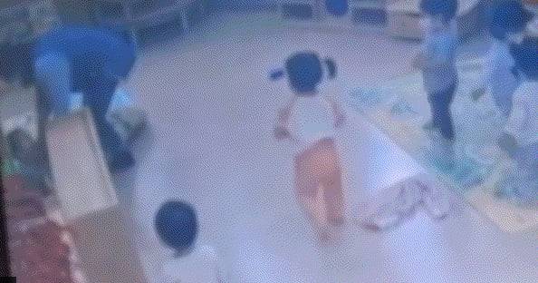 이를 본 교사는 아이를 안아 다른 곳에 앉힌 뒤 책장 정리를 마저 이어갔다. 아이는 바닥에 피를 흘리며 울고 있었지만, 보육교사들은 아무 일도 없는 듯 아이를 방치했다.