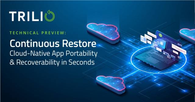 발렌시아, 스페인 -- 비즈니스와이어 -- 클라우드 네이티브 데이터 보호 솔루션을 선도적으로 공급하는 트릴리오(Trilio)가 ‘쿠베콘 + 클라우드네이티브콘 유럽(KubeCon + CloudNativeCon Europe)’ 콘퍼런스에서 클라우드-네이티브 커뮤니티에 선보이는 새로운 ’연속 복구(Continuous Restore)’ 기능의 기술 프리뷰를 17일 발표했다.