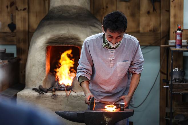 [보은=뉴시스] 안성수 기자 = 충북 보은군이 오는 21일부터 생생문화재 체험 '난공불락의 요새 삼년산성 대장장이와 함께 해요'를 진행한다. 사진은 유동열 전수 조교가 대장장이 일을 하고 있는 모습. (사진=보은군 제공) 2022.05.18. photo@newsis.com
