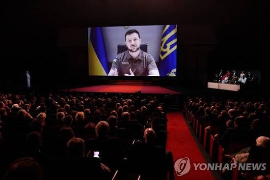 볼로디미르 젤렌스키 우크라이나 대통령이 제75회 칸국제영화제 연설 영상에 깜짝 등장했다.