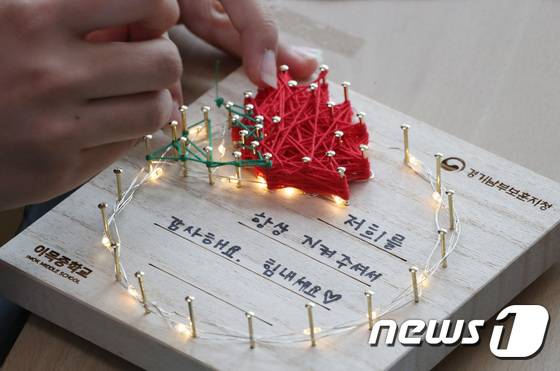 (수원=뉴스1) 김영운 기자 = 18일 오후 경기 수원 장안구 이목중학교에서 학생들이 호국보훈의 달 6월을 앞두고 경기남부보훈지청 주관 '빛을 담은 카네이션, 빛을 닮은 호국영웅!' 프로그램의 일환으로 6·25참전유공자께 전달할 카네이션 액자를 만들고 있다. 2022.5.18/뉴스1