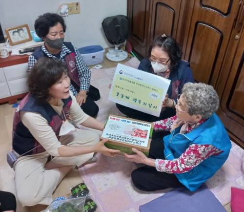 부산 동구 초량2동 자유총연맹 여성회(회장 전옥임) 회원들은 지난 16일 관내 홀로 어르신 가구를 방문해 회원들이 직접 만든 반찬과 생필품을 전달하고, 집안 청소도 해드리는 등 '공동체 행복지킴이' 활동을 실시했다.