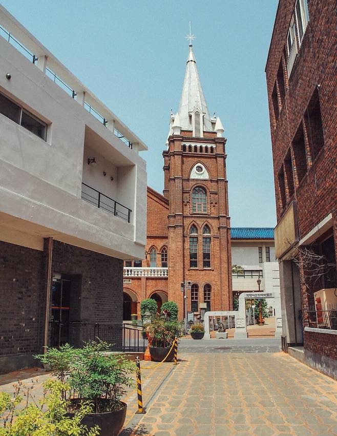 반월당역에서 도보로 10분 남짓 떨어진 계산성당은 대구가 품고있는 근대건축물 중 하나다. 대구에서 최초로 외국인이 만든 건축물로 뾰족한 두 개의 탑이 있어 '뾰족집'이라고도 불렸단다. 계산성당은 19세기 초반 많은 화가의 풍경화 모델이 됐던 장소다. 낮은 평지에 지어진 붉은 색의 성당을 보고 있으면 어쩐지 마음이 평온해지는 기분이다.