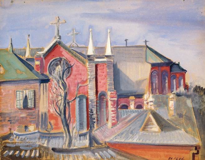 이인성 화가는 천재 화가라고 불렸다. 일제강점기 시절 조선미술전람회에서 18살 어린 나이에 입상할 정도로 뛰어났다. 이인성 화가는 일본에서 대구 남산병원장의 딸을 만나 사랑에 빠져 결혼하게 된다. 사위의 재능을 알아본 장인어른은 자신의 병원 3층을 내어주고 작품활동을 마음껏 할 수 있도록 후원자가 되어줬다. 이인성은 그곳에서 창문 너머로 보이던 대구 계산성당을 그리게 된다.