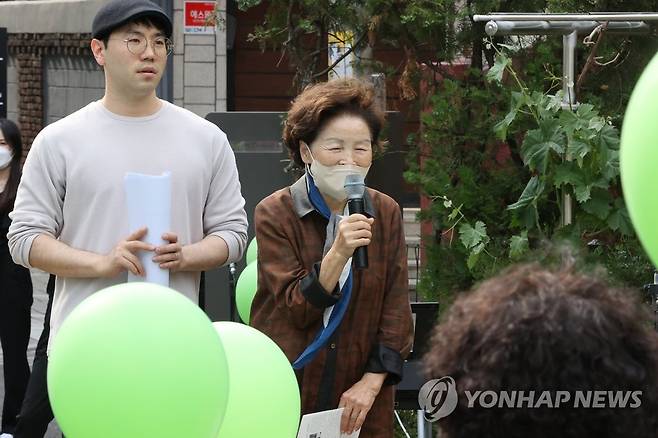 (서울=연합뉴스) 서대연 수습기자 = 이육사 시인 탄생 118주년인 18일 오후 이육사 시인의 외동딸인 이옥비 여사가 성북구 종암동 문화공간 이육사에서 인사말을 하고 있다.
