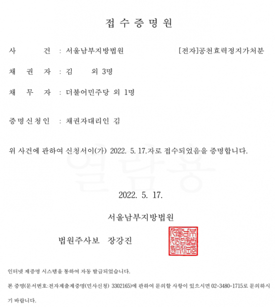 18일, 더불어민주당 당원 K씨 등은 전날 서울남부지방법원에 민주당 오하근 순천시장 후보 '공천효력정지가처분' 신청을 냈다고 보도자료를 배포했다.