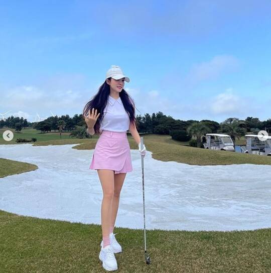 공개된 사진 속에는 골프 웨어를 차려입은 효민의 모습이 담겼다. 특히 스커트로 드러난 효민의 탄탄한 각선미와 요정 같은 미모가 돋보인다.
