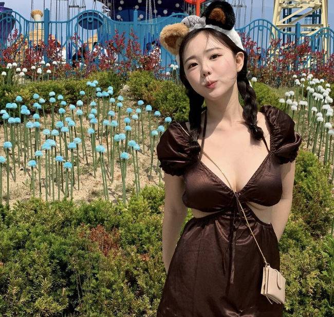 사진 속 홍영기는 놀이기구를 타는 등 굉장히 활동적인 모습을 보이고 있으나 보는 이로 하여금 살짝 불안한 느낌을 주었다. 이유는 바로 홍영기의 패션 때문. 홍영기는 밑가슴을 드러내는 '언더붑' 형식의 원피스를 입었다. 과감하게 파인 넥라인은 물론, 홍영기의 밑가슴까지 또렷하게 드러낸 원피스는 과연 활동적인지 의문스러울 따름이다.