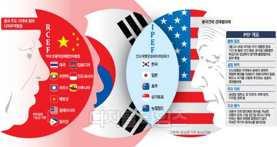 특히 반도체와 배터리 등 중국이 노리고 있는 핵심 전략산업 공급망에 대한 회원국들 간의 강한 연대전선을 구축해, 협의체에 반하거나 속하지 않는 국가들과 배타적인 관계를 갖는다는 내용이 담길 것으로 보인다. IPEF가 사실상 중국을 겨냥한 고립전략이라는 이유는 이 같은 내용 때문이다.