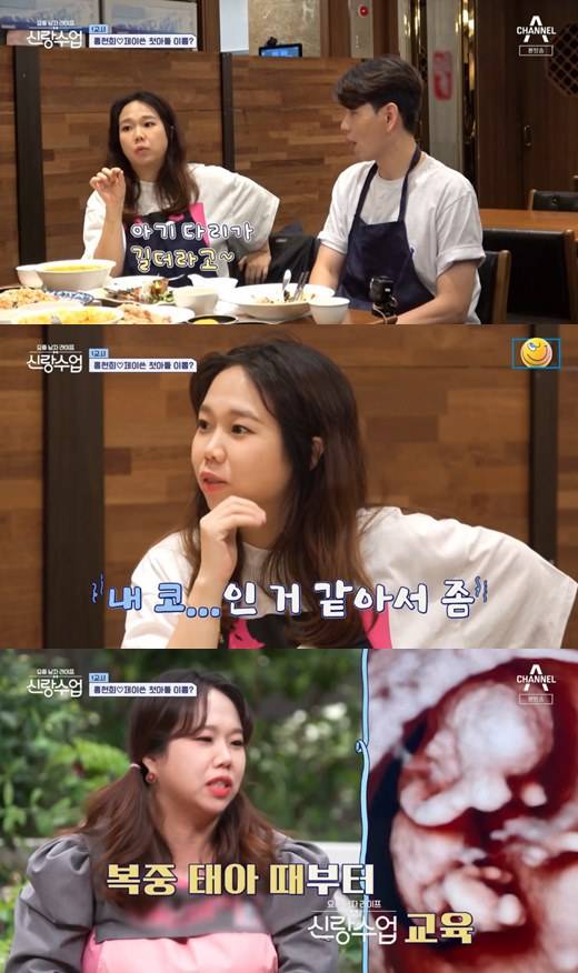 이어 "눈은 나를 닮았으면 좋겠다"며 "'신랑수업'에서 최초 공개한다. 뱃속에서부터 '신랑수업' 교육을 받고 나오는 것"이라고 이야기했다.