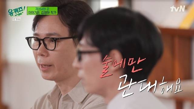 이어 "요즘은 술 거의 안 마신다. 거의 안 마시게 된 지 꽤 됐다. 최근 읽은 책 '금주 다이어리'에 다른 약물은 그걸 하는 사람이 이상하고 끊은 사람이 건강하다고 하는데, 술만은 끊은 사람이 이상하게 보이고 그걸 하는 사람이 정상으로 보인다고 하더라. 변명은 보통 약물을 하는 사람의 몫 아니냐"고 했다. 유재석이 "술에 우리가 너무 관대한 것 아닌가"라며 공감하자 김영하 작가는 "술에만 굉장히 관대한다. 술을 전혀 소화하지 못하는 사람들이 고생하며 살고 있다"고 덧붙였다.