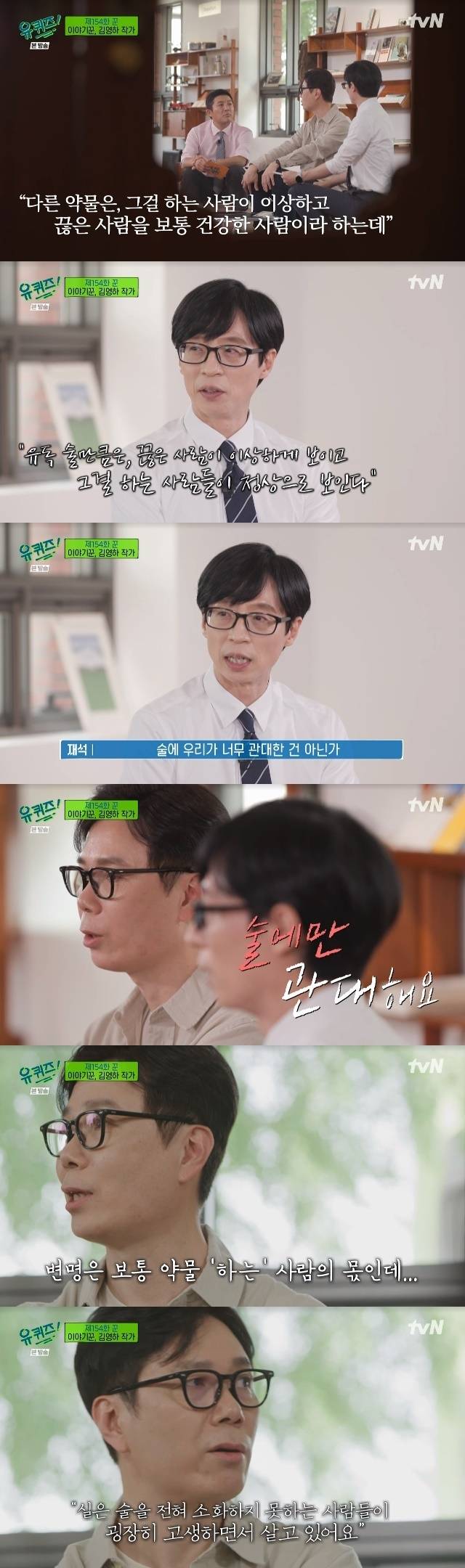 유재석과 김영하 작가가 술에 관대한 사회에 대해 일침했다.
