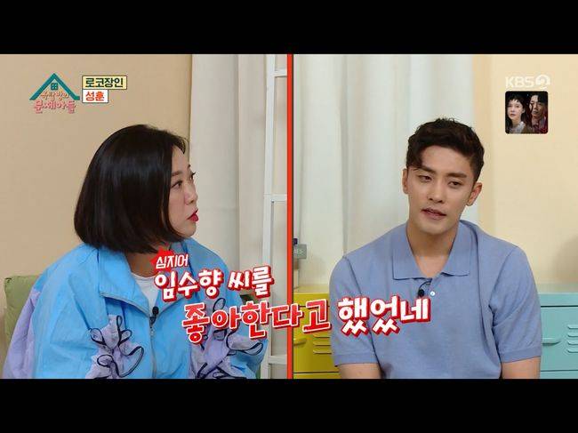이에 김숙은 "임수향 씨랑도 열애설이 있지 않냐"라며 성훈에게 물었다. 성훈은 “호동이 형 ‘강심장’에서 물어봐서 말했던 것 같다”라면서 "호감이 있을 수밖에 없다"라며 그에 대한 이유를 밝혔다. 성훈과 임수향이 처음 만났던 드라마는 당시 SBS 드라마 '신기생뎐'(극본 임성한)이었던 것. 성훈은 “없을 수가 없다. 하루에 5~7시간을 합숙을 하다시피 몇 달을 있었다. 그리고 연기력이 없으니까 아예 얘한테 캐릭터를 세뇌를 하게 된 거다”라며 이유를 설명했다.