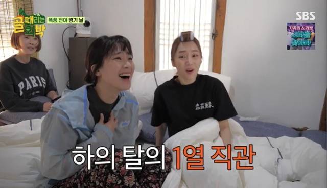 최은경이 “재미있게 하는 것도 재주”라고 말하자 박은영은 “다들 고등학교 때 그러고 놀지 않았어? 바지 여기 내려서 입고”라며 바지를 내려 즉석 배기팬츠를 만들어 모두를 놀라게 했다.