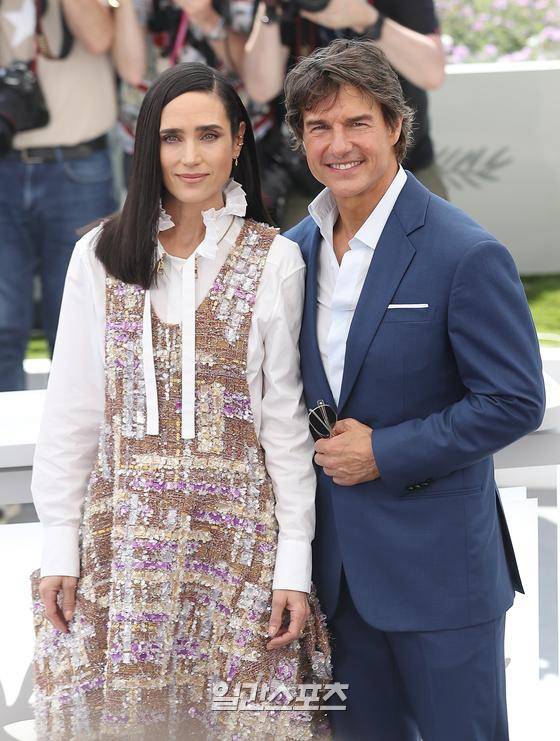 배우 제니퍼 코넬리, 톰 크루즈가 18일(현지시간) 오후 프랑스 칸 팔레 데 페스티발에서 열린 '제 75회 칸 국제영화제'(Cannes Film Festival) ‘탑건: 매버릭’ 포토콜에 참석해 포즈를 취하고 있다.