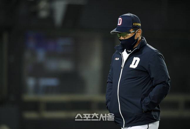 [포토]두산 김태형 감독, 날아간 끝내기 승리에..