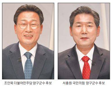 더불어민주당 조인묵·국민의힘 서흥원 후보가 18일 강원도민일보와 춘천MBC가 공동 주관한 양구군수 정당 후보자 토론회에서 지역경제 활성화·양구관광산업 발전방안 등 지역 현안을 두고 설전을 펼쳤다. 조인묵 후보는 “자신감으로 똘똘뭉친 군민들 자긍심 덕분에 지난 어려움 속에서도 거짓은 진실을 이길 수 없다는 신념으로 함께 뛰며 많은 성과를 냈다”며 “4년간 군정경험을 바탕으로 더 잘사는 양구를 만들겠다”고 말했다. 서흥원 후보는 “적극적 기업유치로 일자리창출을 이루고 인구증가로 소멸위기지역에서 벗어나 기업하기 좋은 경제도시, 교육도시를 만들겠다”며 “1년내내 북적거리는 경기활성화를 위해 경제군수로서 혼신을 다하겠다”고 강조했다.