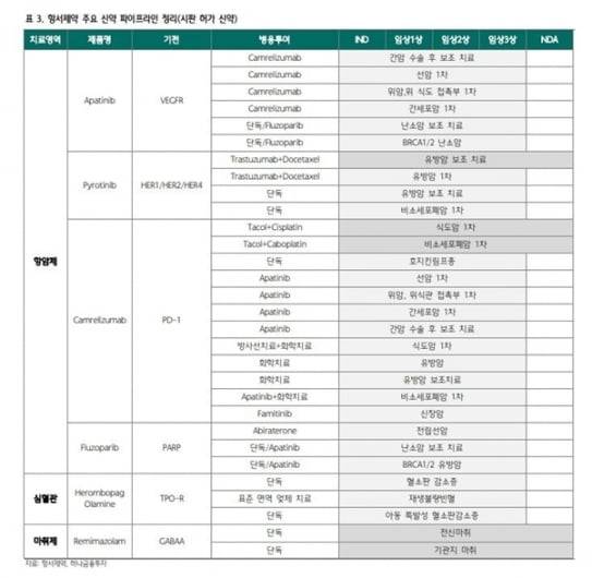HLB와 항서제약이 개발하고 있는 리보세라닙과 캄렐리주맙도 각각 VEGFR 표적항암제와 PD-1 면역관문억제제의 병용이다.