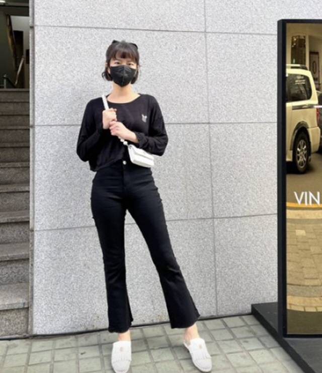박지연은 늘씬한 몸매 위 올블랙 패션으로 보디라인을 강조했다.