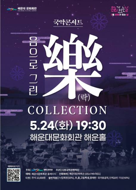 해운대문화회관(관장 서영지)이 5월 24일(화) 해운대문화회관 해운홀에서 5월 문화가 있는 날 국악콘서트 '음으로 그린 樂' 무대로 관객들을 찾는다.