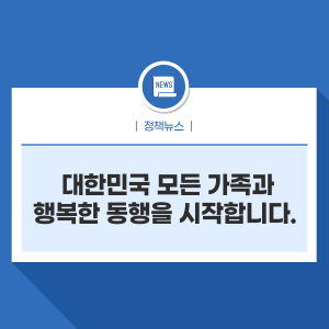 < 행복동행 선언 > ▷ (주제) 행복동행, 모든 가족 곁에 대한민국 ▷ (메시지) • [가족이 있다] ▷ 온가족의 곁에서 든든한 힘이 되겠습니다. • [행복을 잇다] ▷ 함께 돌봄으로 가족의 행복을 잇겠습니다. • [내일이 있다] ▷ 모든 가족을 존중하는 따뜻한 내일을 열겠습니다. |