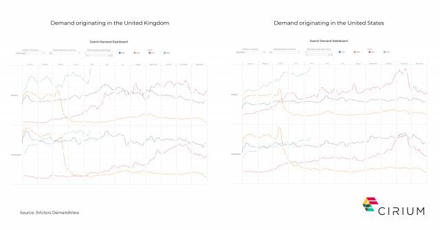 한 가지 예로 3V의 데이터는 최근 영국과 미국의 내수가 급증하고 생산량이 전년에 비해 변동했다는 것을 보여준다. 여행 수요 예측에 과거 동향만 참고했다면 2022년 현재까지 확인되는 여행 급증 추세를 예측하지 못했을 것이다.