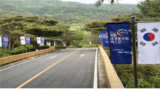 계룡대CC 진입로 다리 좌우측에 세로 형태의 태극기, 엑스포 엠블럼 및 주제가 담긴 2022계룡세계軍문화엑스포 깃발 총 10개를 설치해 이용객들의 이목을 집중시키고 있다.