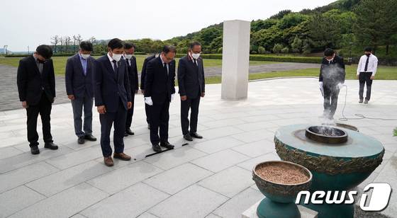 (제주=뉴스1) 오미란 기자 = 오는 23일자로 대검찰청 차장검사에 임명된 이원석 제주지방검찰청 검사장이 19일 제주시 봉개동 제주4·3평화공원을 방문해 제주4·3 희생 영령 앞에 참배하고 있다.(제주4·3평화재단 제공)2022.5.19/뉴스1