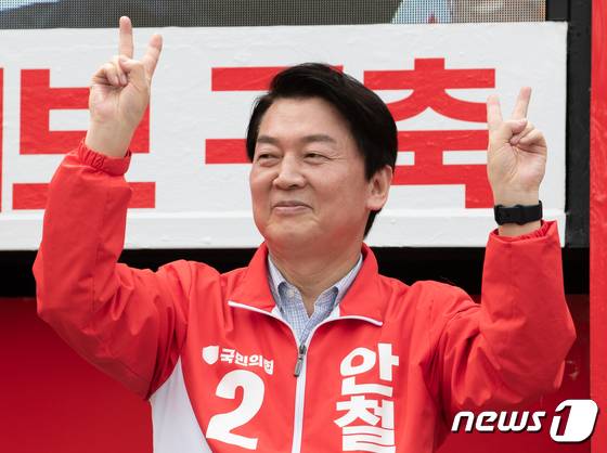 (성남=뉴스1) 이재명 기자 = 안철수 국민의힘 성남 분당갑 후보가 19일 오후 경기도 성남시 분당구 야탑역광장에서 열린 합동 출정식에서 지지를 호소하고 있다. 2022.5.19/뉴스1