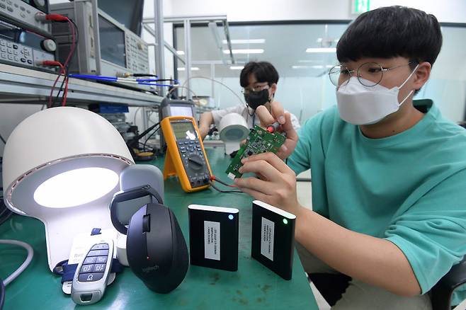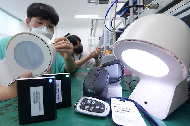 새로운 제품이나 서비스에 대해 기존 규제를 면제, 유예시켜 주는 규제 샌드박스 제도가 활성화되면서 혜택을 받은 기업들이 신기술 연구개발에 매진하고 있다. 19일 서울 성동구 워프솔루션에서 연구원이 조명이 비치는 영역까지 원거리 무선 충전이 가능한 '스페이스온' 제품을 테스트하고 있다.
