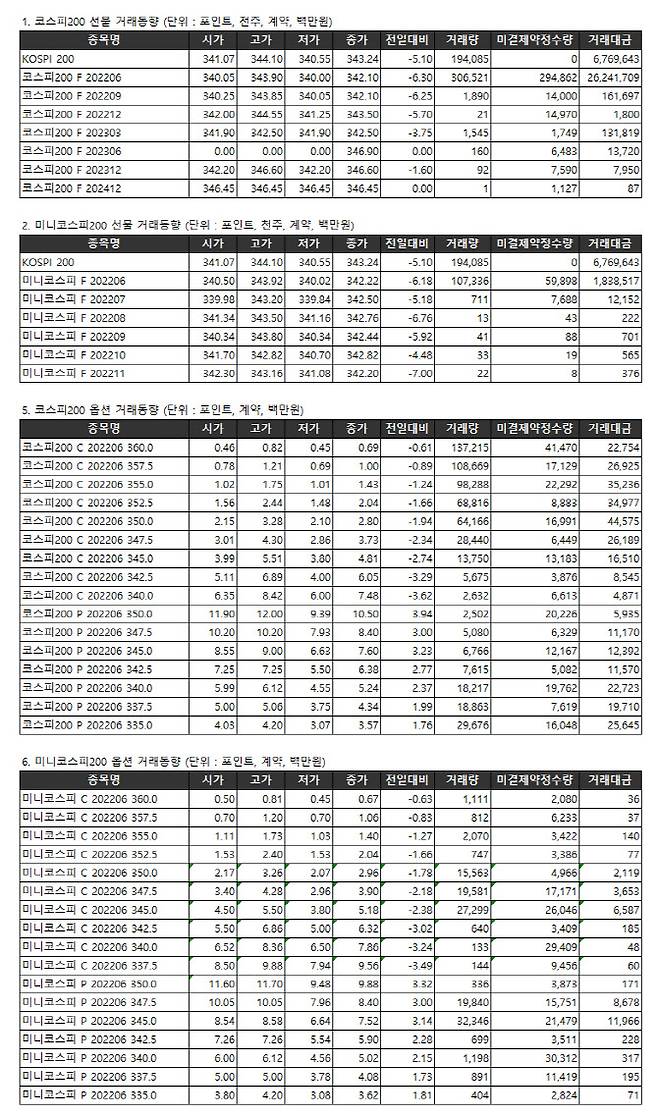 [표]거래소주가지수선물·옵션시세표(5/19)