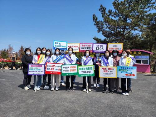 캠페인 참가자들은 금연, 신체활동, 구강보건, 만성질환 예방관리 등의 건강생활실천과 치매조기검진, 자살 예방 등 피켓과 현수막을 들고 튤립공원 및 시장, 마트, 병·의원, 거리를 행진하며 건강증진을 위한 군민의 관심과 참여를 독려하고 건강정보 상담 서비스도 제공해 주민 참여를 이끌었다.