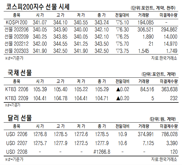 - [표]코스피200지수·국채·달러 선물 시세(5월 17일)
