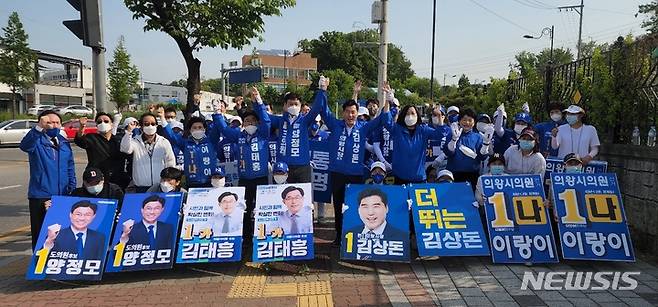 [의왕=뉴시스] 박석희 기자 = 재선에 도전하는 더불어민주당 김상돈 경기 의왕시장 후보는 공식 선거 운동이 시작된 19일 오전 6시 포일로 사거리에서 자당의 시·도의원 후보들과 출정식을 열고, 본격적인 선거운동에 돌입했다.